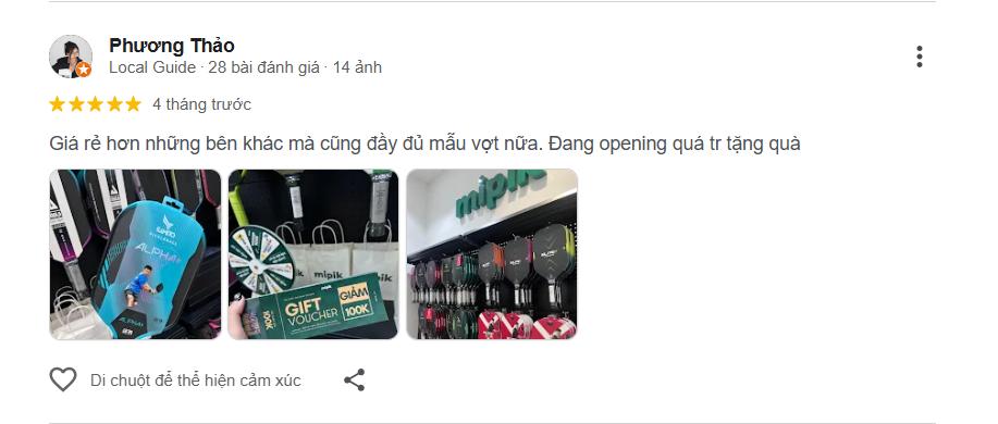 Đây là mức đánh giá rất tốt, cho thấy độ hài lòng cao về Mipik – Cửa hàng pickleball Phú Nhuận từ khách hàng thực tế.