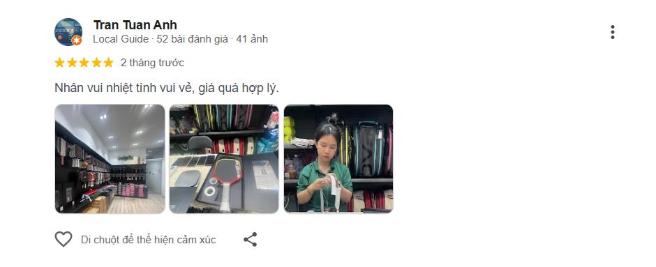 Mipik nhận được rất nhiều đánh giá 5 sao từ khách hàng và hơn 200 lượt đánh giá. Một vài khách hàng từng mua vợt tại Mipik chia sẻ: